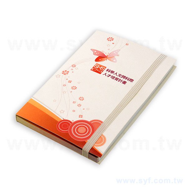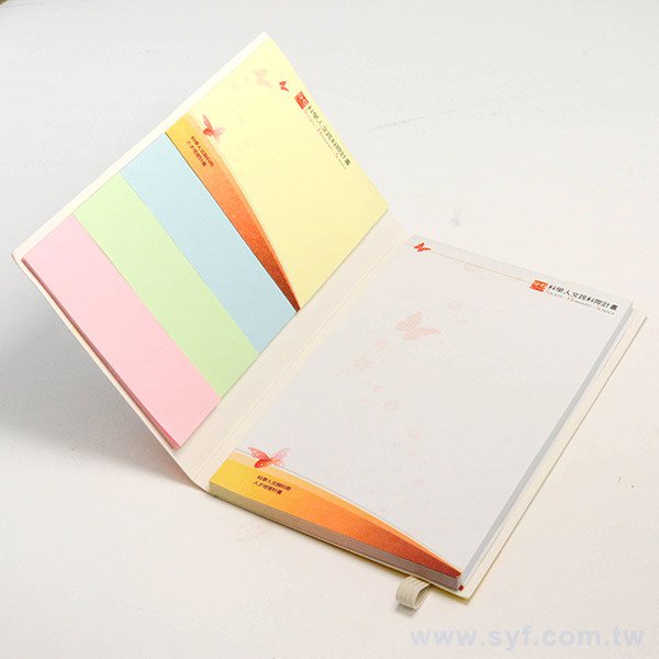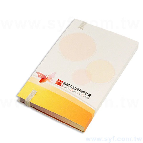 三合一銅版紙封面款便利貼-封面彩印(霧膜)-內頁彩印-平頭三色標-綁帶設計(同0735)