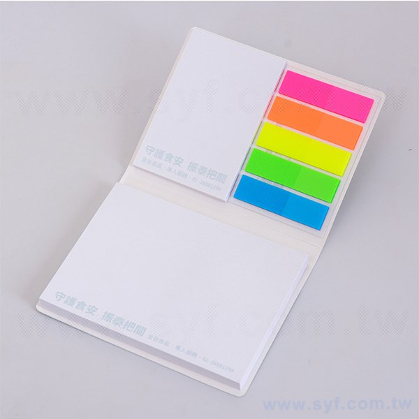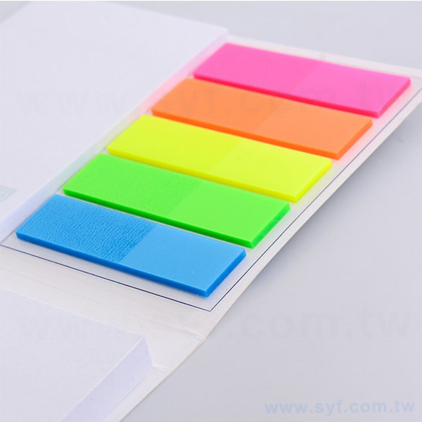 三合一銅版紙封面款便利貼-封面彩印(亮膜)導圓角-內頁單色印刷-平頭PET五色標