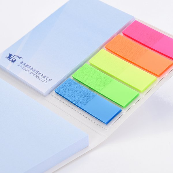 三合一銅版紙封面款便利貼-封面彩印(霧膜)-內頁彩印-平頭PET五色標
