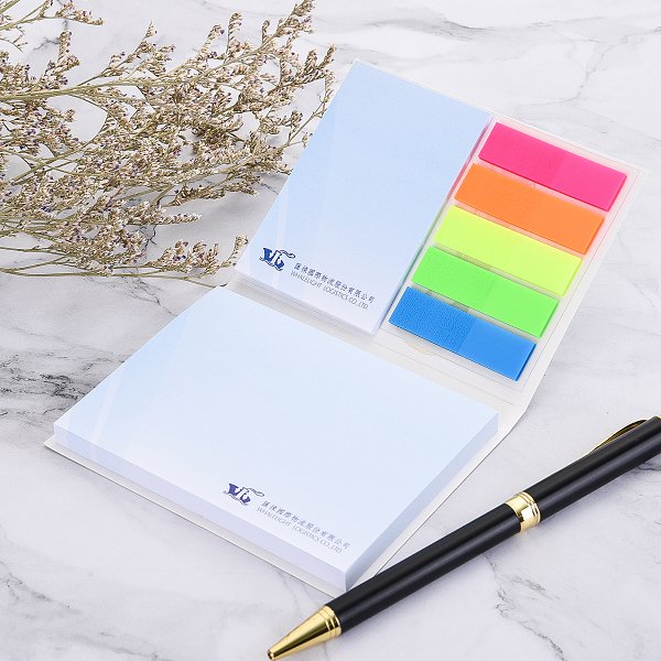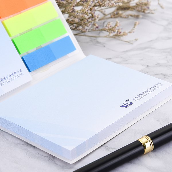 1. 三合一銅版紙封面款便利貼,專為企業客製化設計,展現專業形象。