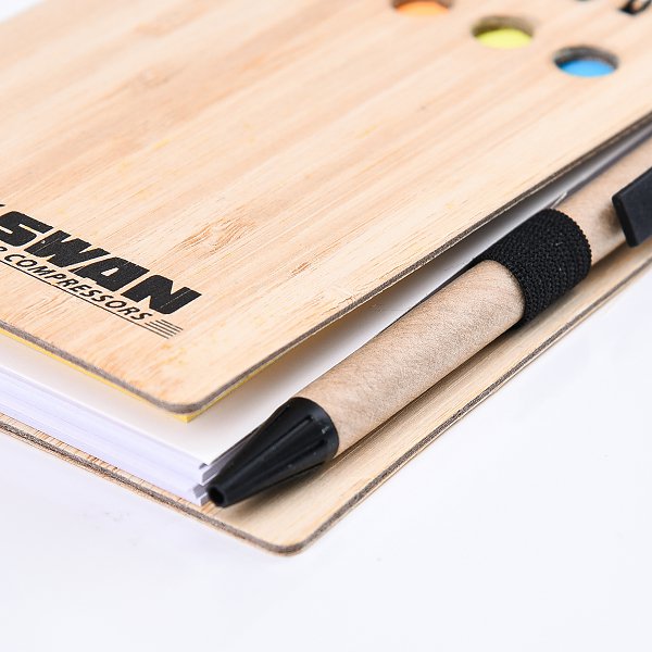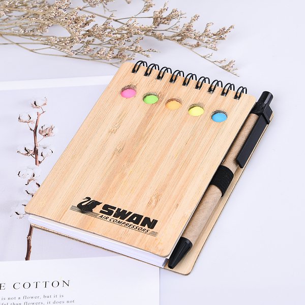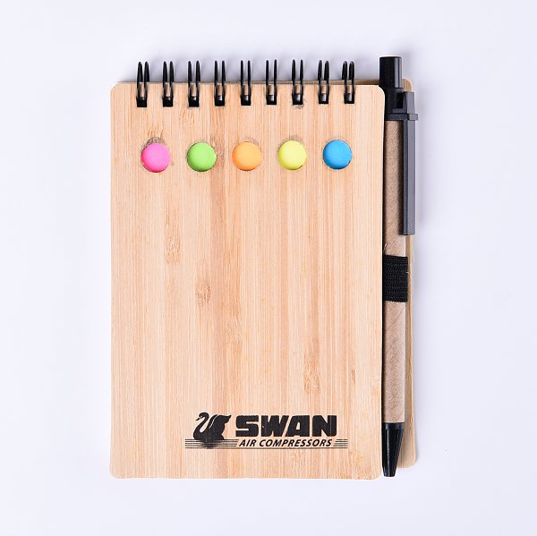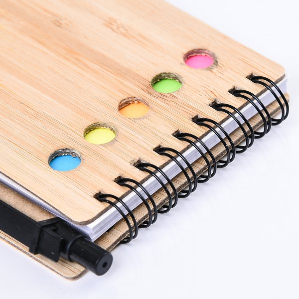 環裝線圈便利貼-帶筆便利貼木竹本130x90mm-客製便利貼