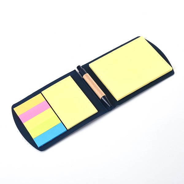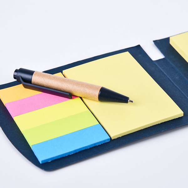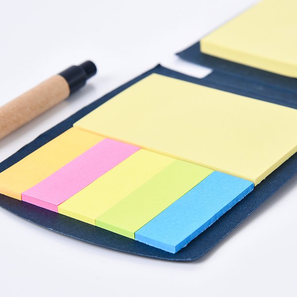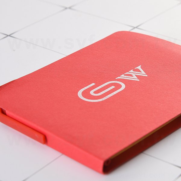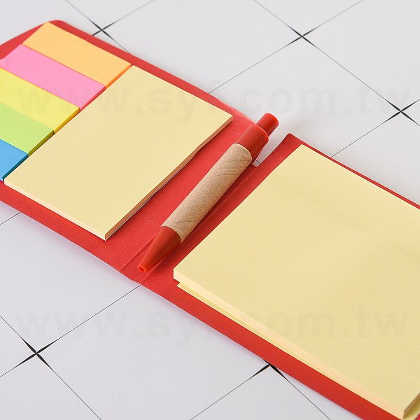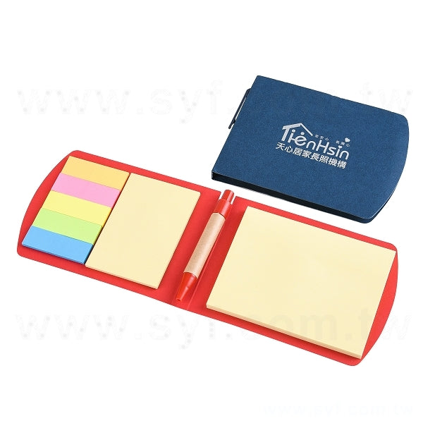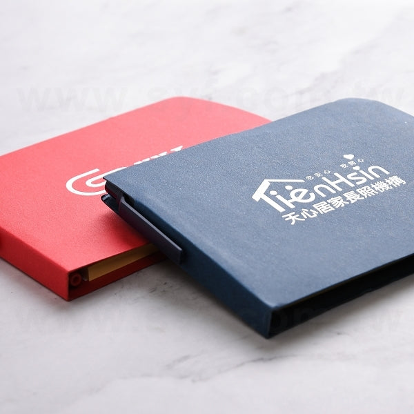 三合一牛皮紙封面便利貼-12x9cm-封面單色/內頁無印(平頭色紙五色標)(附筆)