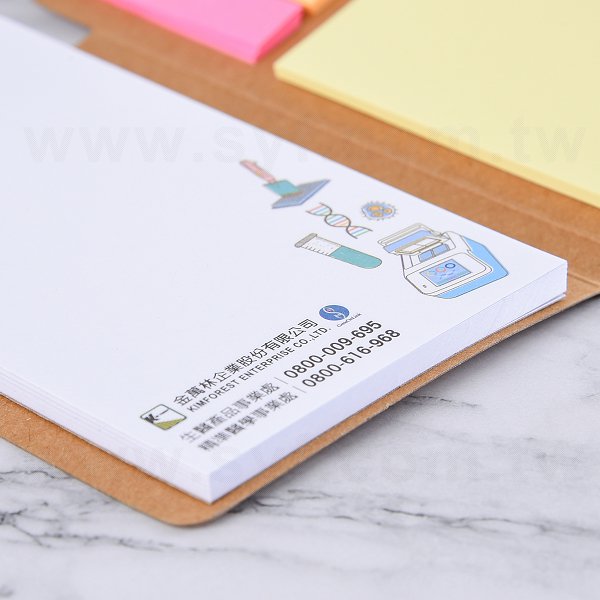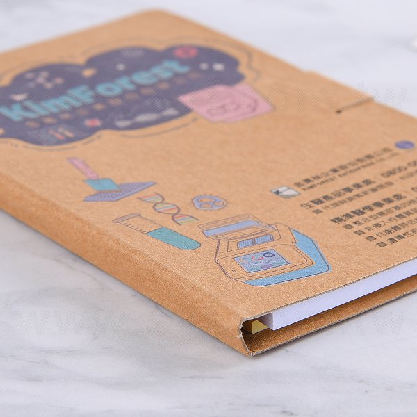 三合一手札式封面款便利貼-牛皮紙封面彩印導圓角-內頁彩印-平頭五色標-筆插設計