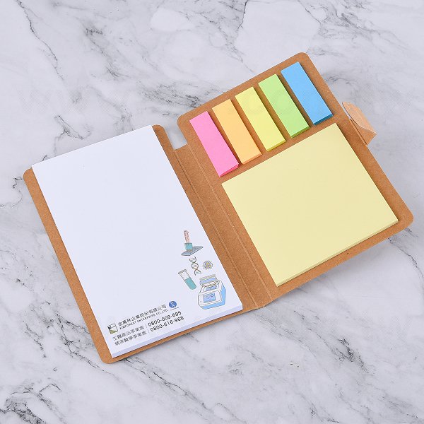 1. 三合一手札式封面款便利貼採用牛皮紙設計,質感高雅,適合商務使用。