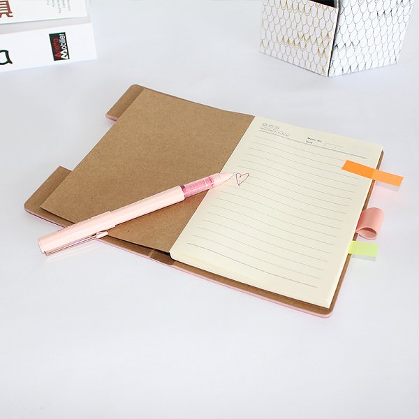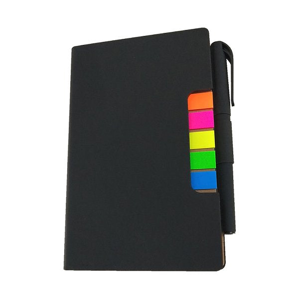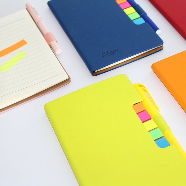 三合一精裝筆記本款便利貼-PU封面-平頭PET五色標-附筆