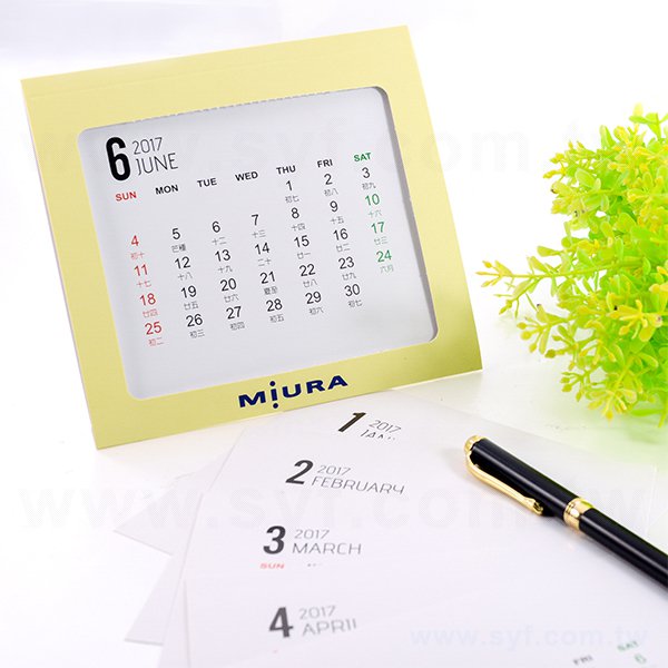 4. 單面彩色立式桌曆,方便使用,展開即可立於桌面。