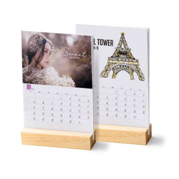 木座桌曆組-300g銅西-尺寸110x150mm-+木紋底座-客製化印刷