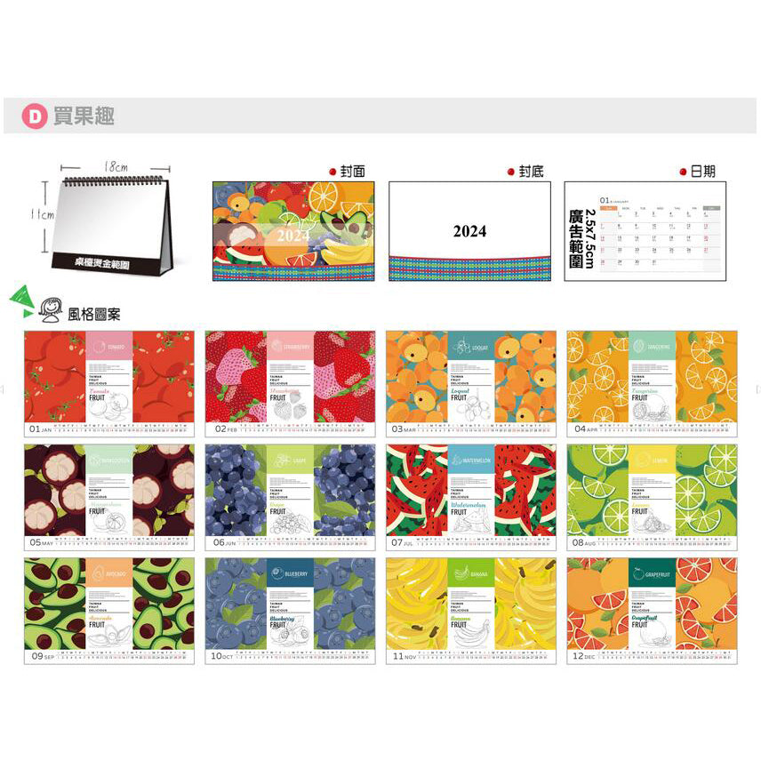 1. 32開桌曆-D款11x18cm三角桌曆,尺寸適中,適合辦公桌或家中使用。