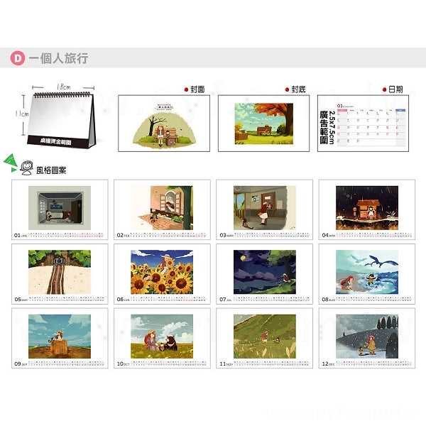- 桌曆紙張:200g銅西/150g銅版(內頁13張雙面)