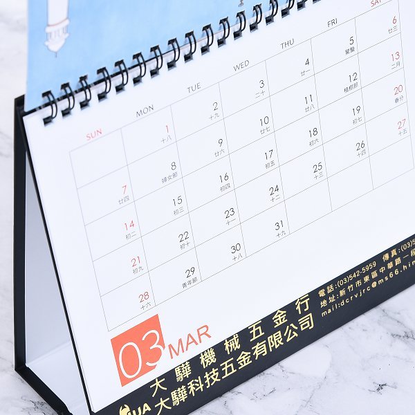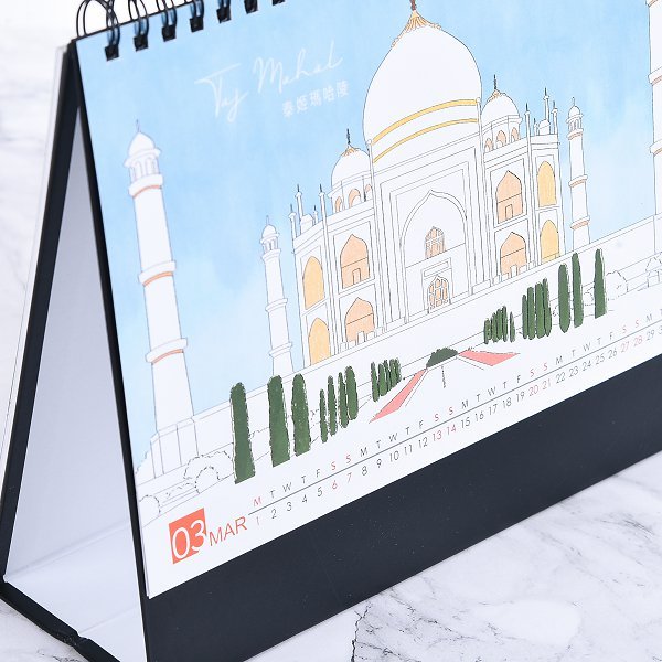 1. 高品質三角桌曆,適合辦公桌或家中使用。