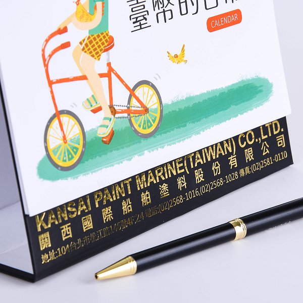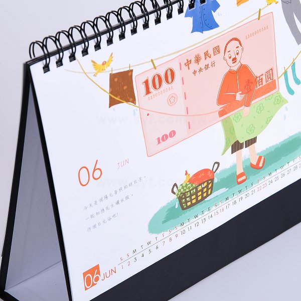 2. 桌曆紙張採用150g銅西,印刷方式為雙面彩色,色彩鮮豔。