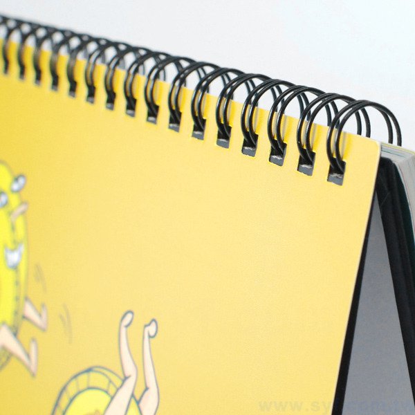 1. 三角桌曆採用特銅紙雙面彩色印刷,簡約圖樣設計,黑色鐵質雙線圈使桌曆穩固好翻頁。