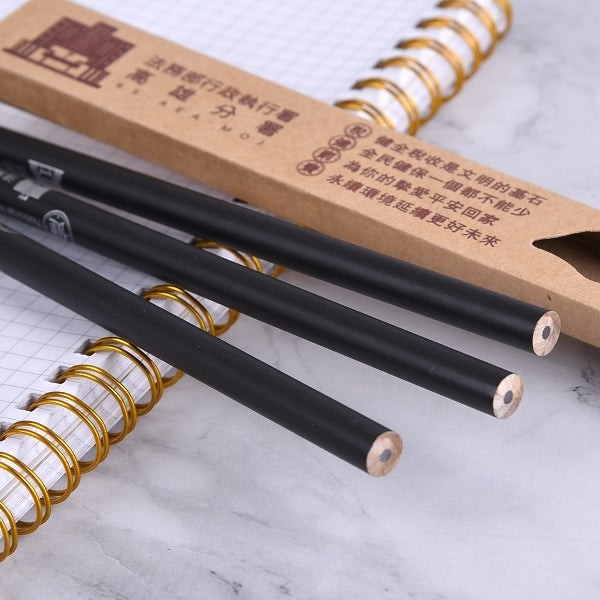 三入原木環保鉛筆組-圓形黑色塗頭筆桿