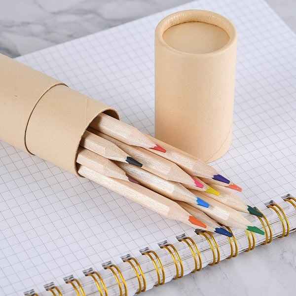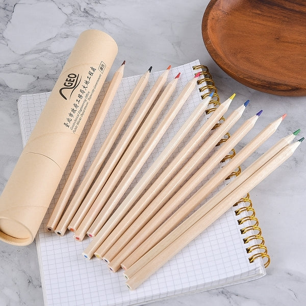 1. 12色彩色鉛筆組,採用紙筒材質,尺寸為20x3.5CM,色鉛筆長18CM,印刷範圍包含12色鉛筆,紙筒印刷單色LOGO。