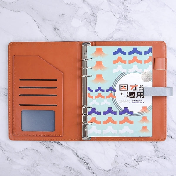 2. 磁扣活頁筆記本,PU皮革封面,可客製內頁廣告頁,適合作為禮贈品送給客戶。