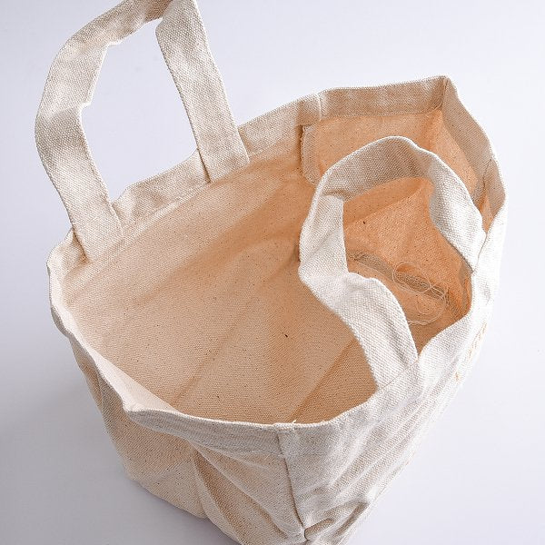 1. 米色帆布袋,厚度12安,尺寸為W25XH18XD18公分,提帶長度2.5X36公分,堅固耐用,適合搭配各種風格服裝使用。