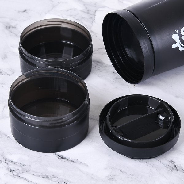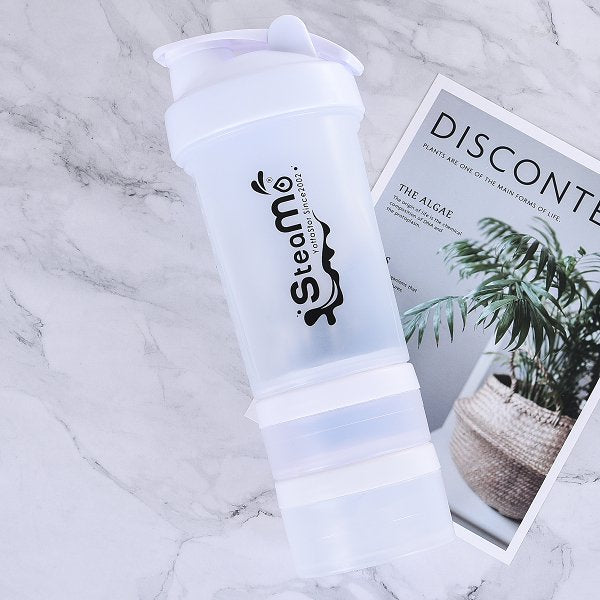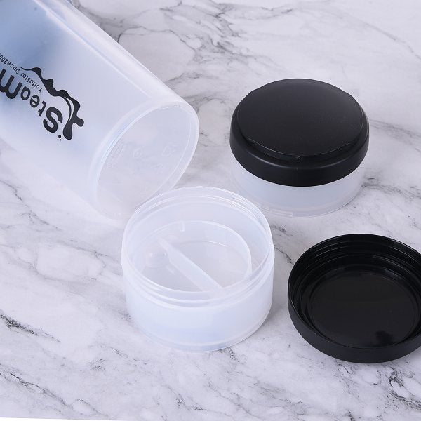 2. 材質為PP,輕巧耐用,附不銹鋼蛋白球及塑膠隔層,可分層放置蛋白粉。