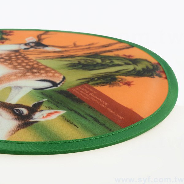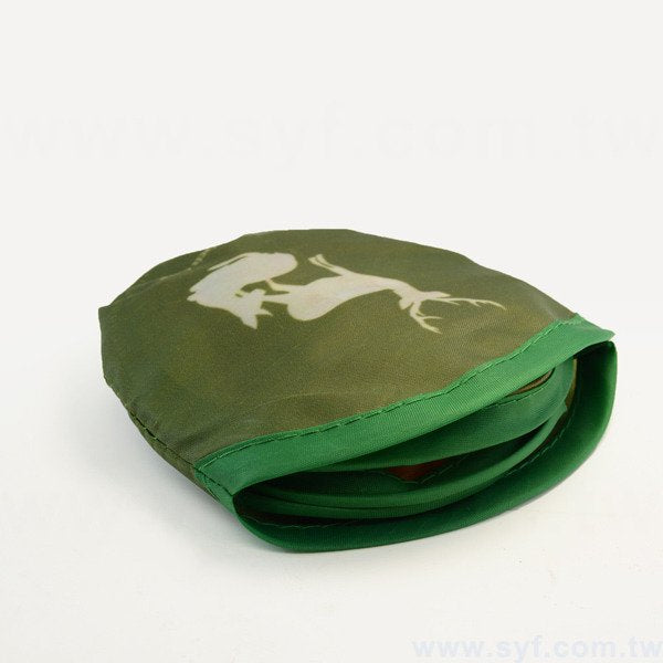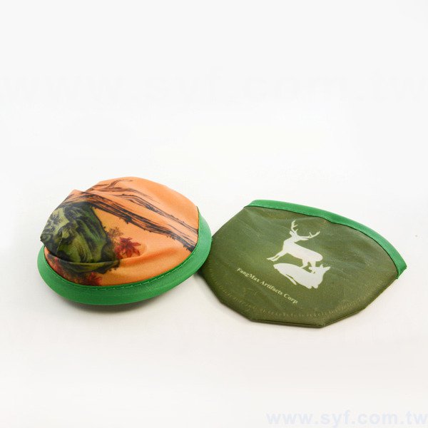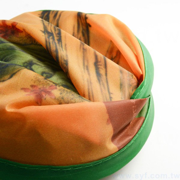 - 尼龍口袋折疊飛盤扇,展開直徑20cm,搭配公司LOGO及文字彩印,廣告宣傳效果佳。