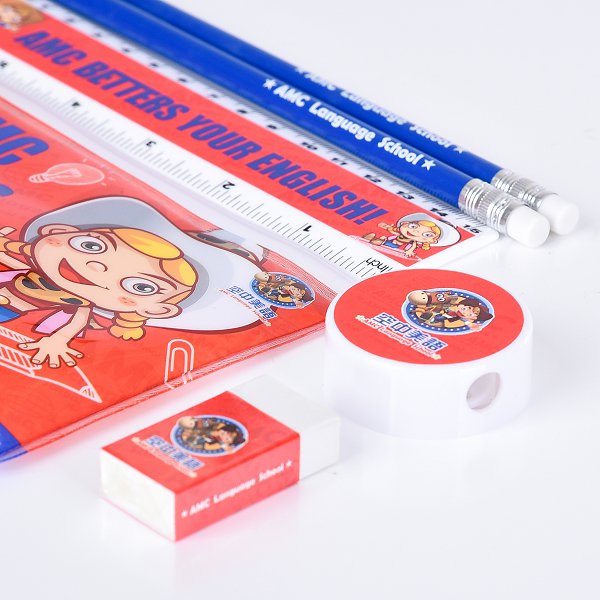 4. 削筆機和橡皮擦均有彩印設計,文具組更加完整。