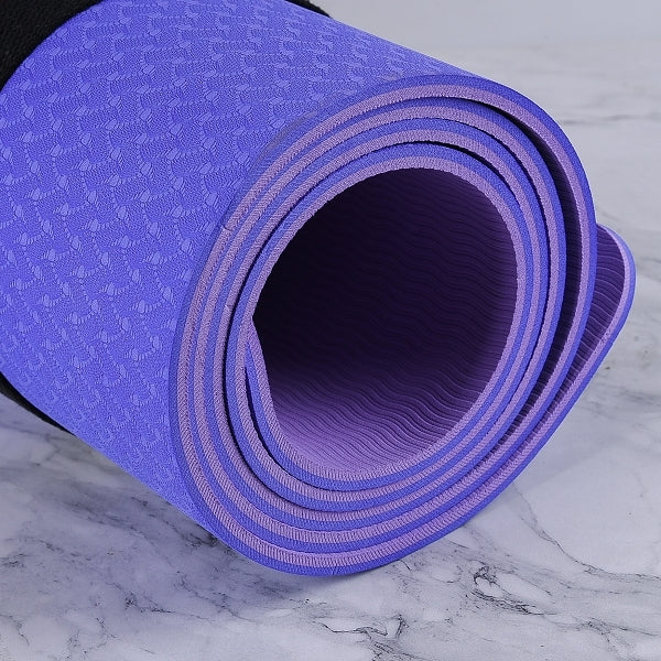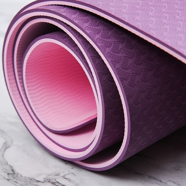 1. TPE瑜珈墊展開尺寸為183*61cm,適合在家或瑜珈教室使用。厚度達6mm,提供良好支撐和舒適度,讓您享受瑜珈運動。