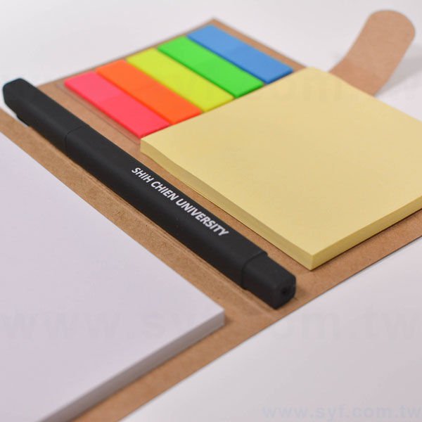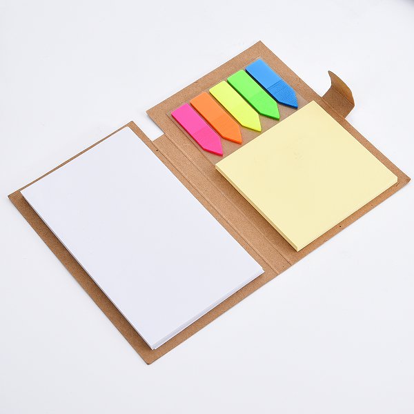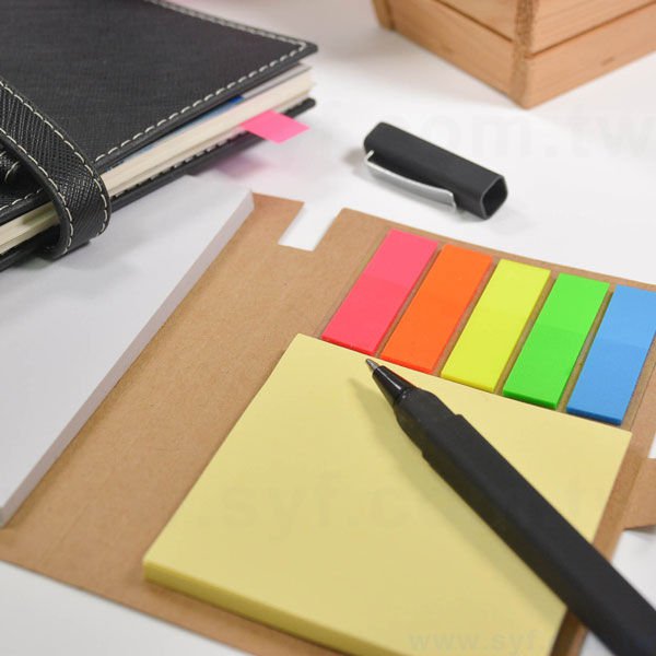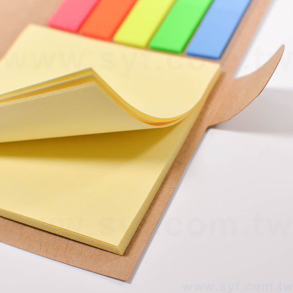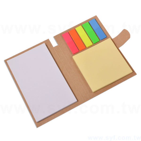 三合一牛皮紙封面手札式便利貼-9x14cm-封面單色/內頁無印(尖頭PET五色標)