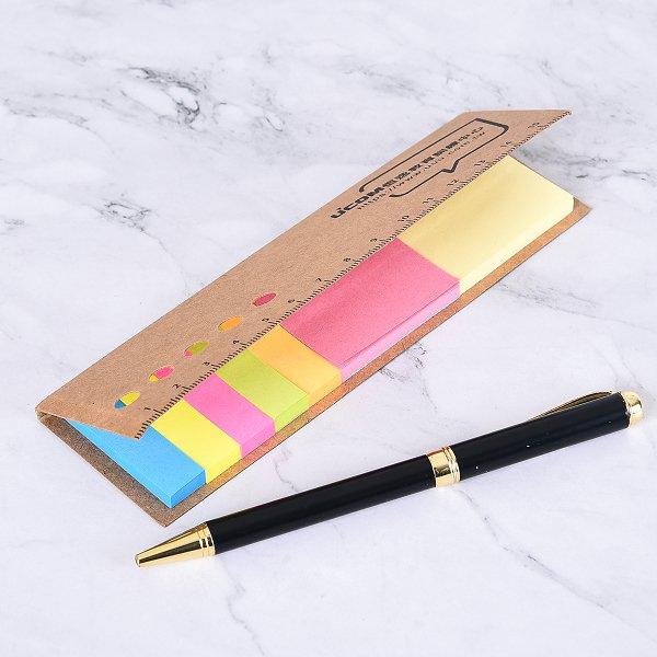 二合一牛皮紙封面便利貼-5x16cm-封面單色/內頁無印(平頭色紙五色標)