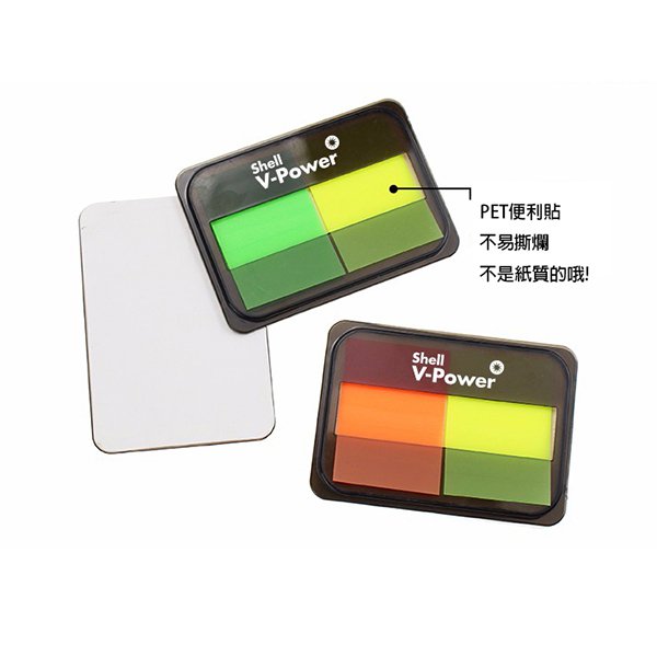 1. 塑膠盒便利貼-雙色PET便利貼尺寸為8*5.5cm,內頁共有12張,方便攜帶使用。