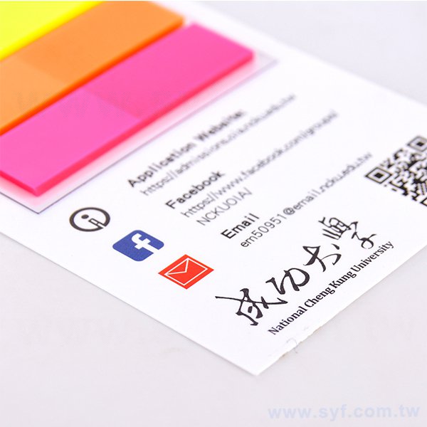1. 14x6cm背卡式亮膜彩印便利貼,適合企業禮贈品,展現專業形象。