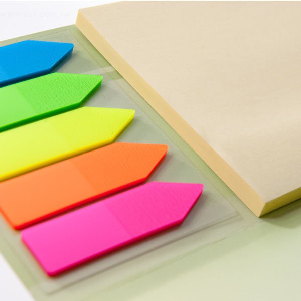 - 4.內頁尺寸:7.5x7.5cm、平頭/箭頭五色標
