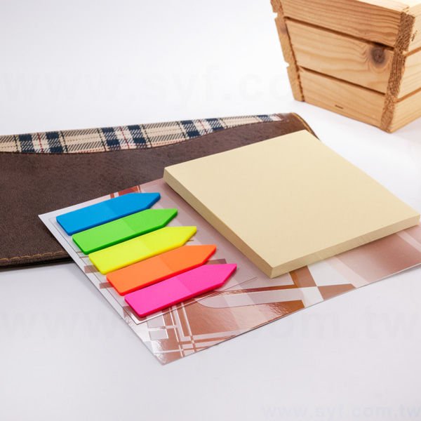 二合一五色標便利貼-局部上光便利貼-7.5x7.5內頁無印刷-memo-彩色背卡便利貼