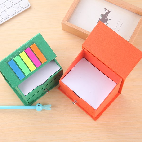 2. 牛皮紙外殼設計,質感優雅,適合送禮自用,展現專業品味。精緻小巧的尺寸,放在桌上不佔空間,是辦公室、家居的理想選擇。外殼尺寸為11.5*10*8.8cm,便條紙200張,五色標25張。