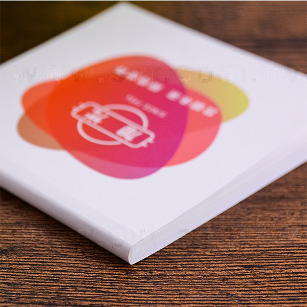 2. 尺寸為9x9x0.5cm,封面規格為200g銅西卡,內頁為80g模造紙單面印刷。