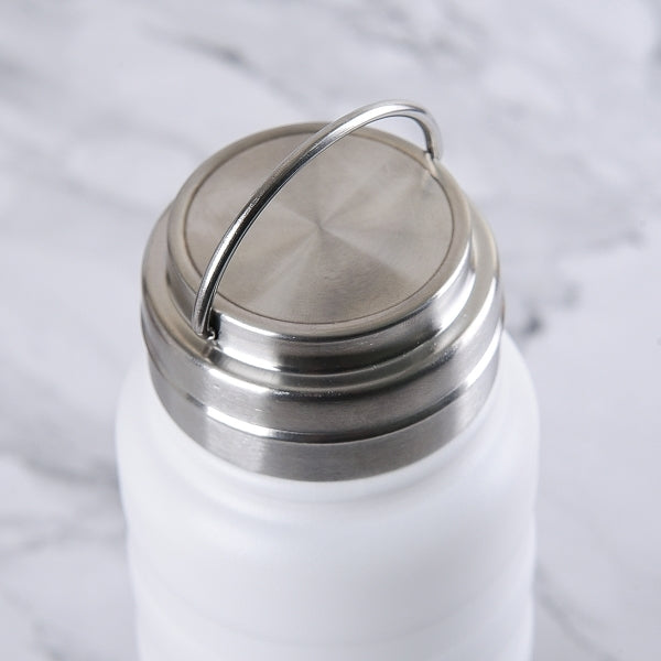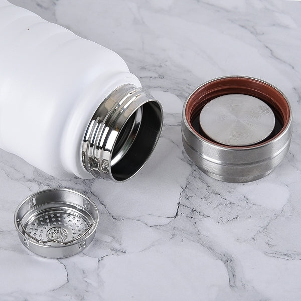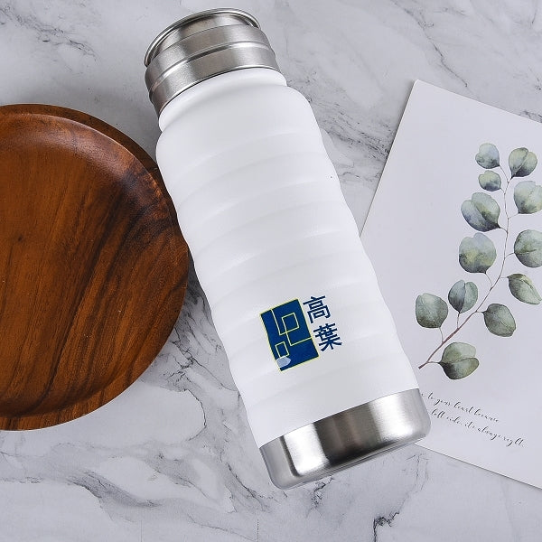 1. 不鏽鋼保溫杯,600ml容量,白色瓶身,輕巧方便攜帶,適合辦公室、戶外活動使用。