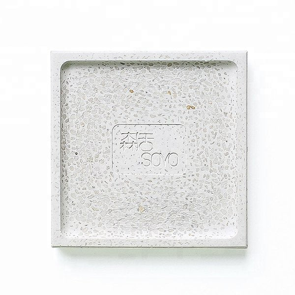 1. 矽藻土製成的正方型吸水矽藻肥皂盤,尺寸為10x10x1.5cm,重量為250G,環保健康且易清潔保養。