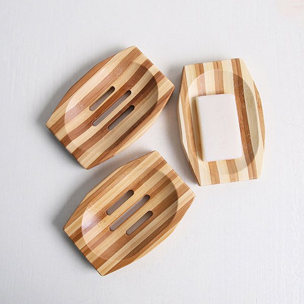 1. 竹木肥皂盒,環保材質,尺寸為12.5*8.5*1.5cm,適合辦公室使用。