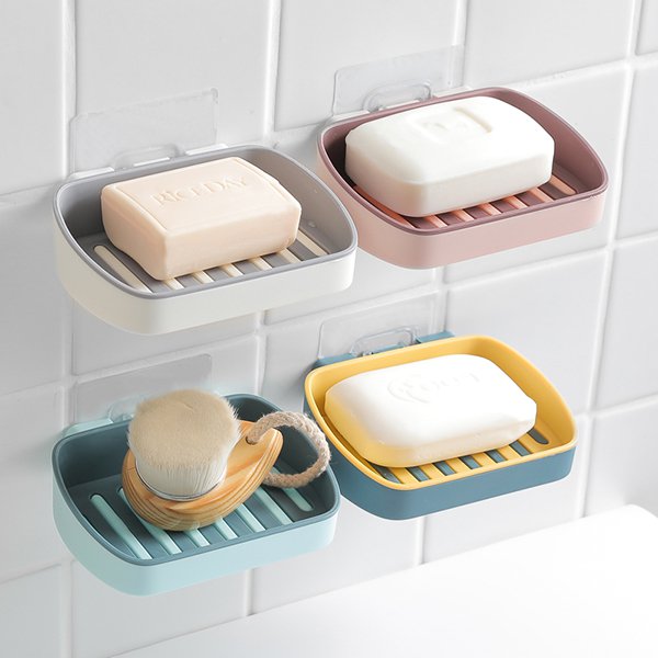 1. 無痕貼壁掛式雙層塑料肥皂盒-長方形,方便掛在浴室牆上,節省空間。