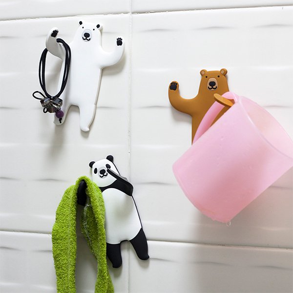 1. PVC可摺疊魔術貼熊造型掛鉤,可愛動物造型讓生活更有趣,直接粘貼,牆壁不受損。