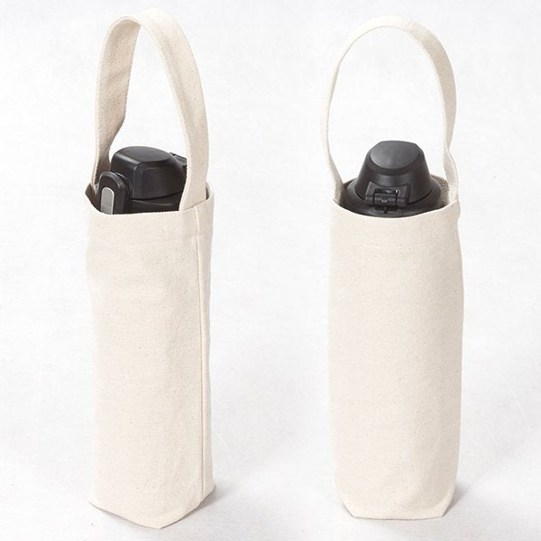 1. 水壺提袋客製,採用12盎司本白帆布製成,網印Logo,簡單大方,適合紅酒袋或隨行杯提袋使用。
