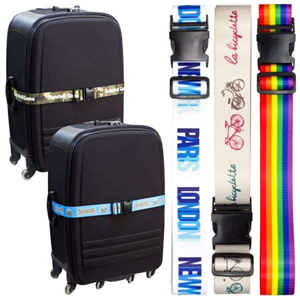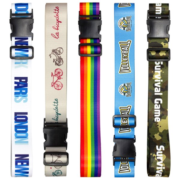 1. 插扣行李帶,白色單面彩色印刷,適合旅行業者、公司禮贈或團體出遊需求。
