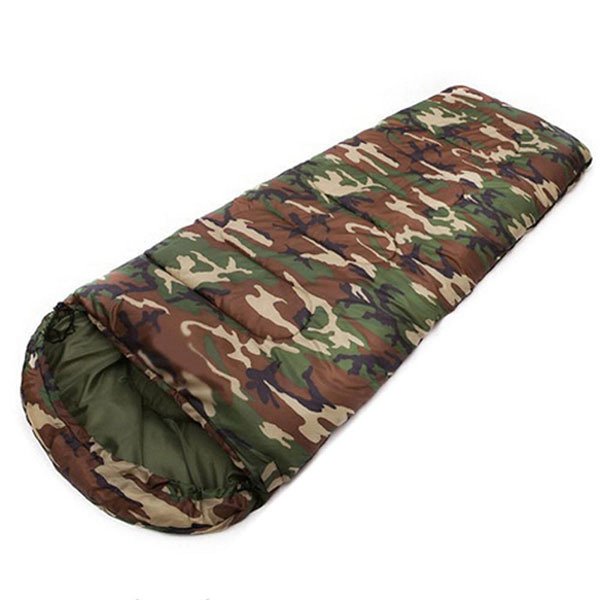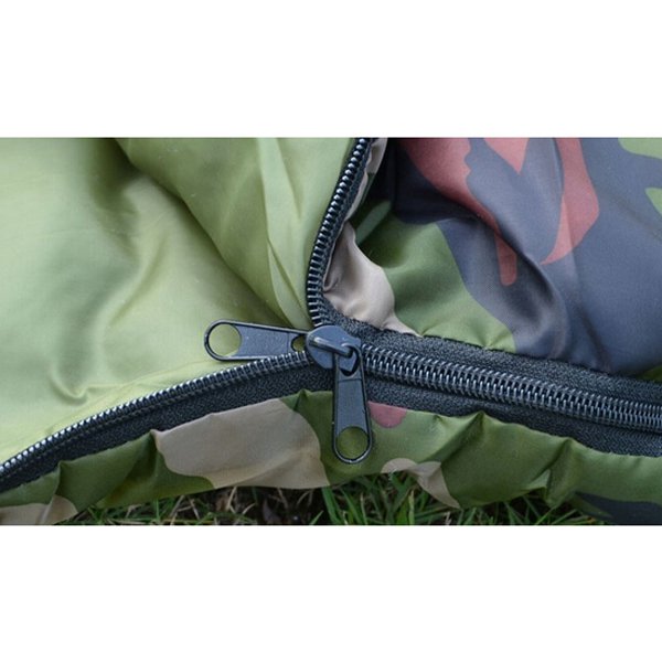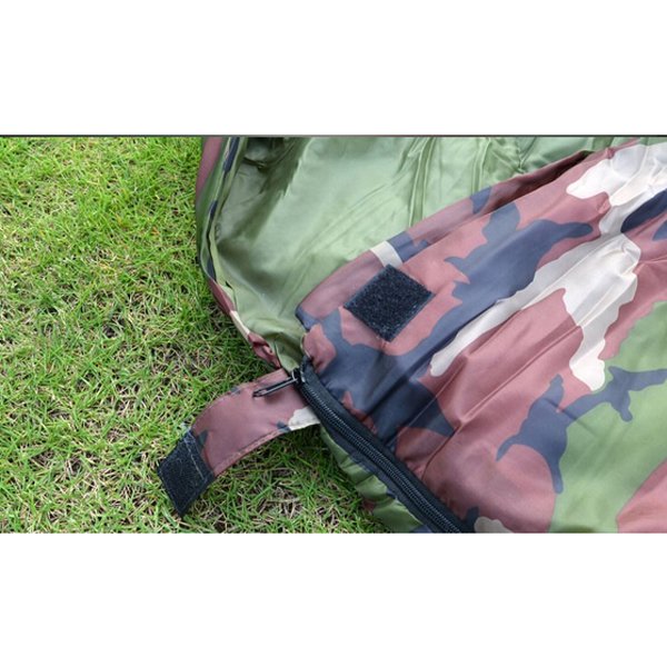 1. 單人迷彩戶外睡袋採用190T聚酯纖維