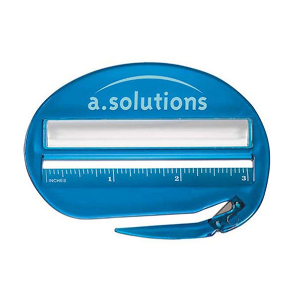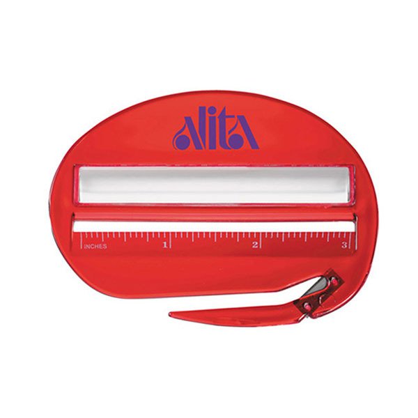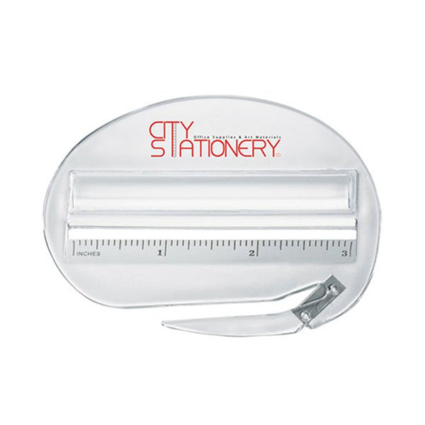1. 圓形ABS直尺開信刀,尺寸為9.5*7*0.7cm,材質堅固耐用。方便實用,適合辦公室使用。
