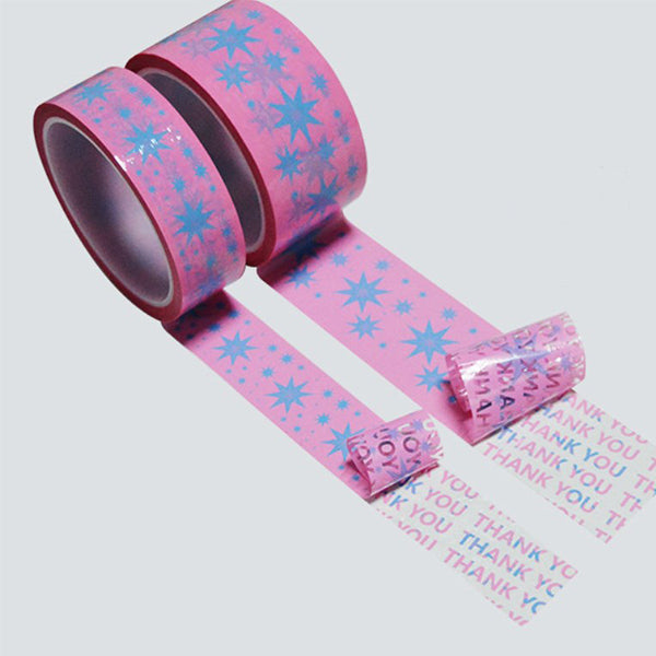 1. PET材質製成的5cm*50米撕開留字防偽膠帶,提供全客製化LOGO印刷服務,展現專業形象。
