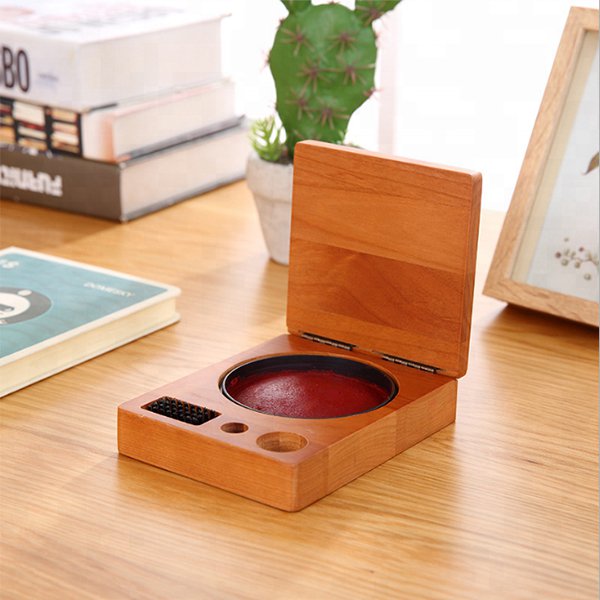 1. 方形印章盒-木製印泥盒,材質為木頭,尺寸為13*10*3.5cm,簡約大方,適合辦公室使用。