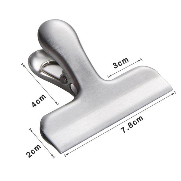 1. 多功能不銹鋼鬥牛犬夾,採用不銹鋼材質,堅固耐用,尺寸為7.8*6.1*3.8cm,重量輕巧只有33g,方便攜帶使用。