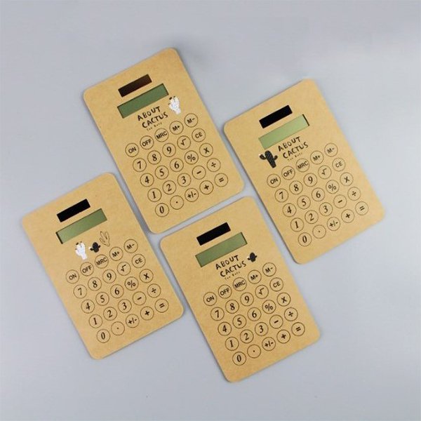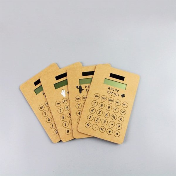 1. 簡約8位數太陽能牛皮紙計算機,牛皮紙材質質感十足,尺寸適中,方便攜帶。