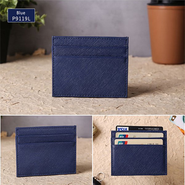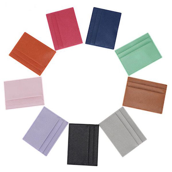 1. 彩色輕薄卡片夾採用十字壓紋牛皮製成,質感高雅,展現專業形象。尺寸為9.9*4.5*0.3cm,重量僅30g,輕巧方便攜帶。