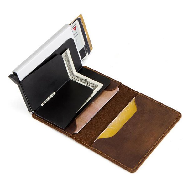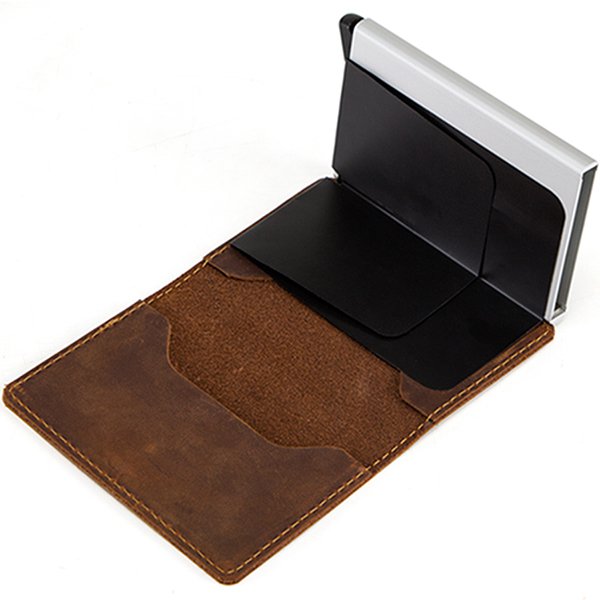 RFID防盜卡片夾-質感真皮+鋁製卡套