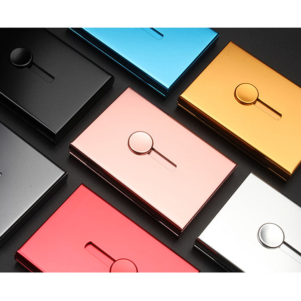 大容量升級款-時尚金屬商務手推式名片夾-可印刷LOGO