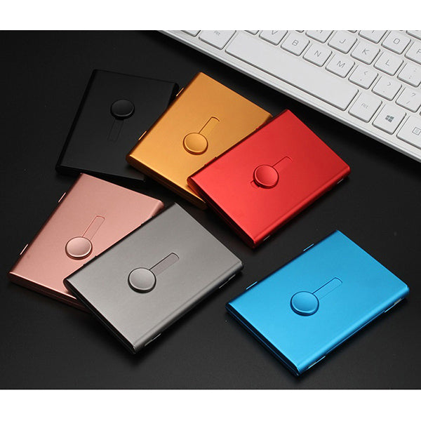 輕薄普通款-時尚金屬商務手推式名片夾-可印刷LOGO