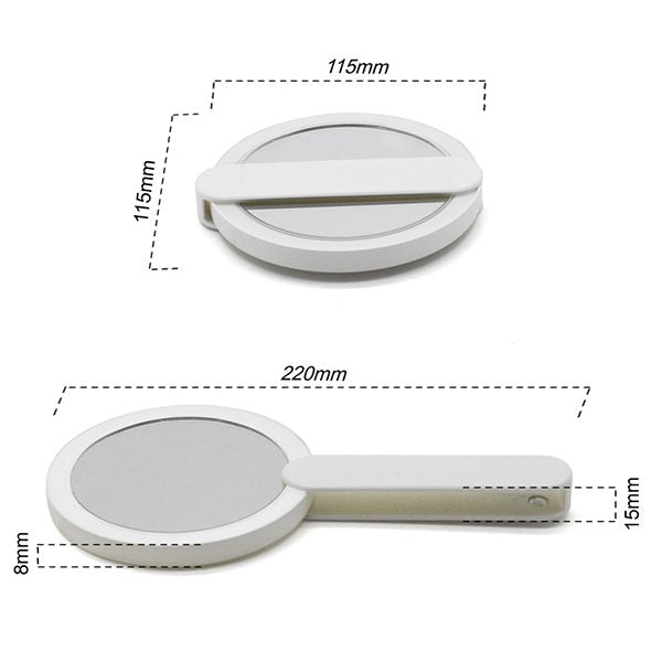 1. LED手拿式化妝鏡尺寸為10.5*10.5*1.05cm,採用ABS